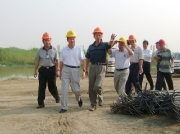 2005年時任集團公司黨委書記鄭加輝(左二)、黨委副書記關(guān)根(右一)陪同時任佛山市委書記黃龍云(左一)等市領(lǐng)導(dǎo)視察佛山市新聞中心工地