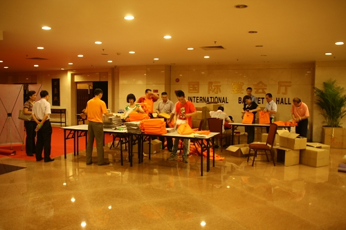 熱鬧的員工簽到場面