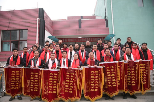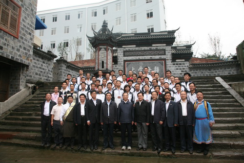 佛山第三批汶川水磨援建隊(duì)伍獲頒錦旗帶上哈達(dá)和羌紅合影(第一排右3洪樹(shù)潔)
