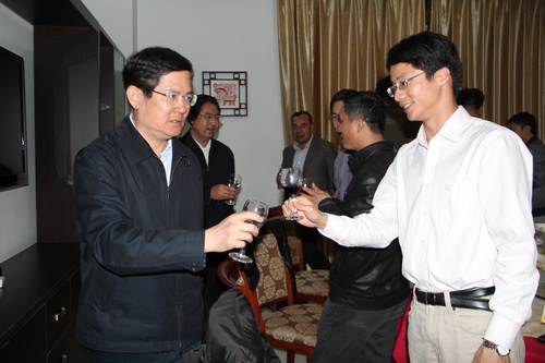 廣東省副省長(zhǎng)徐少華對(duì)援疆干部進(jìn)行考察慰問(wèn)時(shí)與陳偉斌碰杯